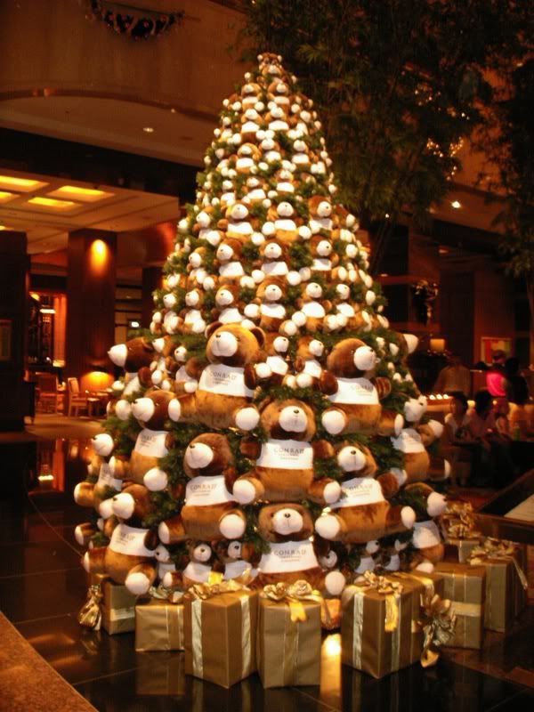 Went to Conrad Hotel to support Harris (and the NUS choir) carol. It was my first and last time hearing people carol for this year's Christmas. Anyways, I took a pic of the teddy-made Christmas tree at the hotel. Waited very long for our dearest Edwin to come out from the toilet hence we were late to meet Py @ Chinatown MRT stn.