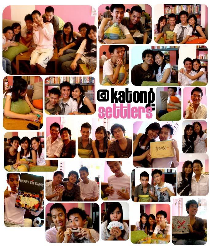 Celebrated Gerald's birthday yesterday at Settler's Cafe, Katong. Throughout the whole session, we played games that required us to make animal sounds, to search for pictures in a bigger mess of pictures, to shout "ugly!" and then snatching cards from each other, trying to grab rubber bones discreetly and to scheme against one another. Fun!! X)